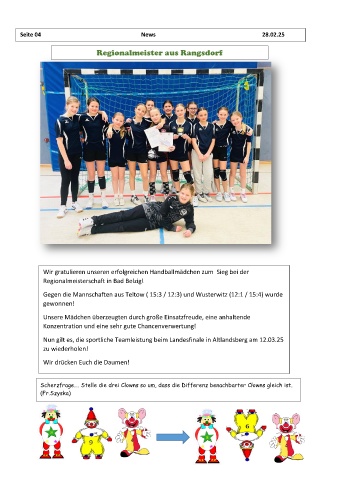 Wir gratulieren unseren erfolgreichen Handballmädchen zum Sieg bei der